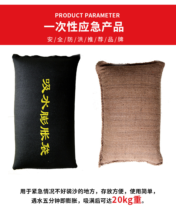 防汛沙袋一般分為兩種,一種是普通防汛沙袋,另一種是吸水膨脹防汛沙袋。